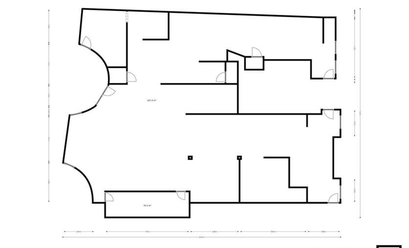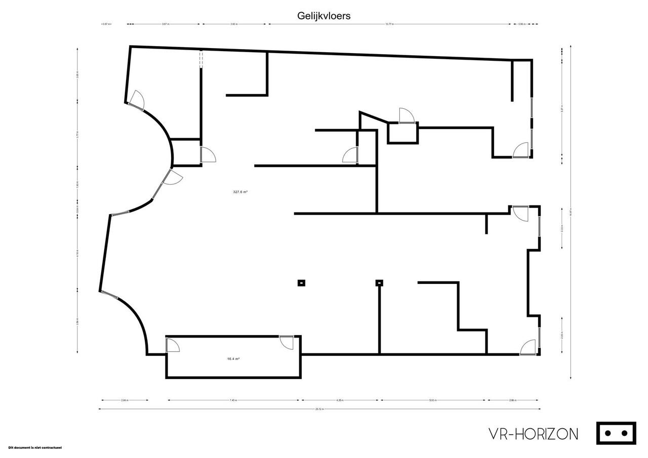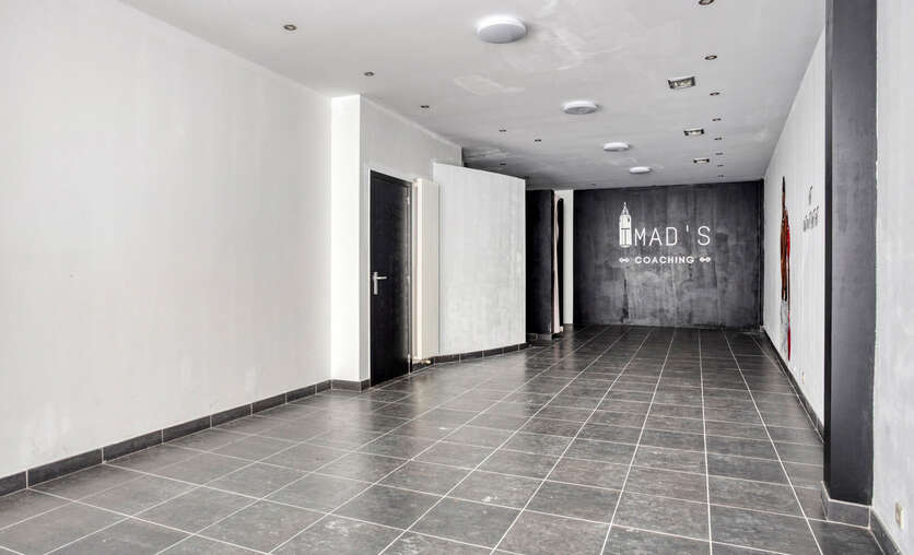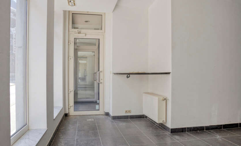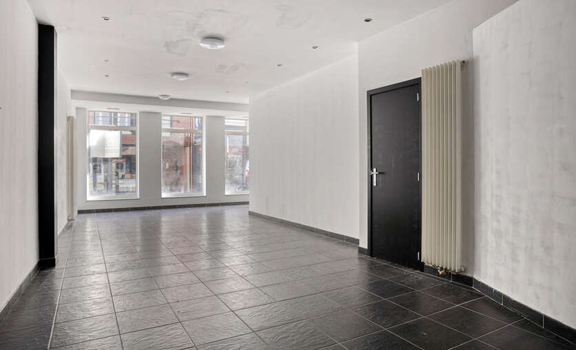 Ruim handelsgelijkvloers met verschillende ingangen en grote voorgevel.