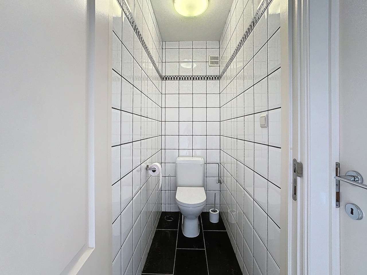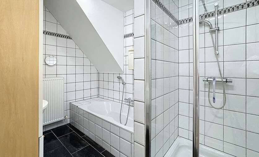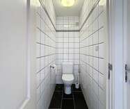 Aan de achterzijde is een terrasje. Er is een eerste slaapkamer, apart toilet en een badkamer met douche, ligbad en lavabo.