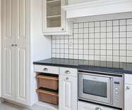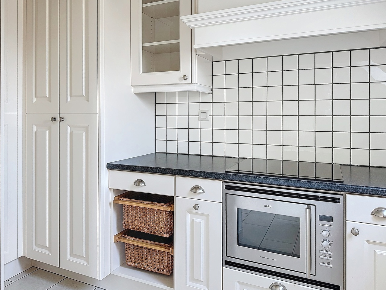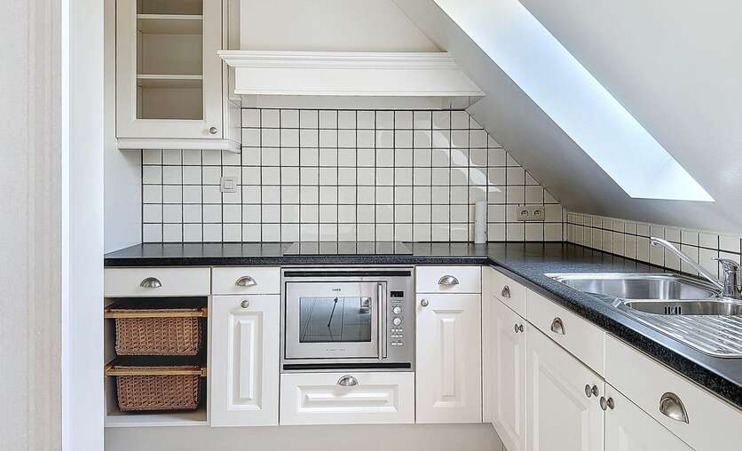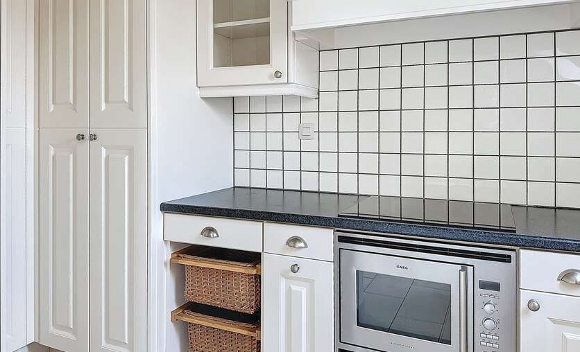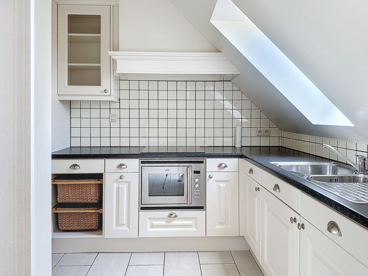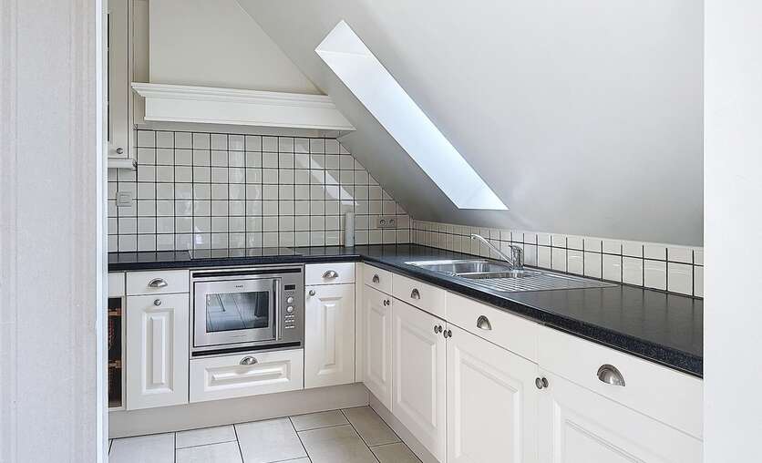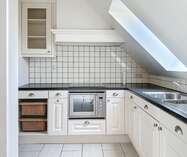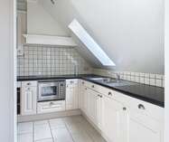 Bij het betreden van het appartement komen we binnen in de woonruimte, verder is er ook een keuken aanwezig met ingebouwde oven, dampkap, kookplaat.