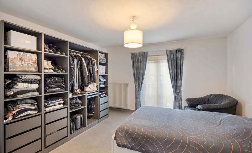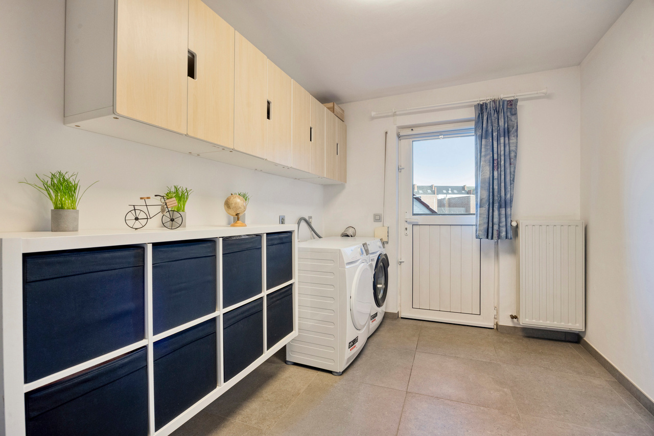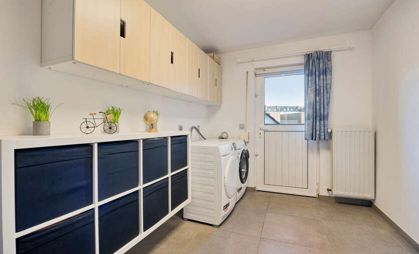 Op de eerste verdieping bevinden zich twee slaapkamers, een badkamer met toilet, dubbele lavabo en douche, evenals een ruime wasruimte.