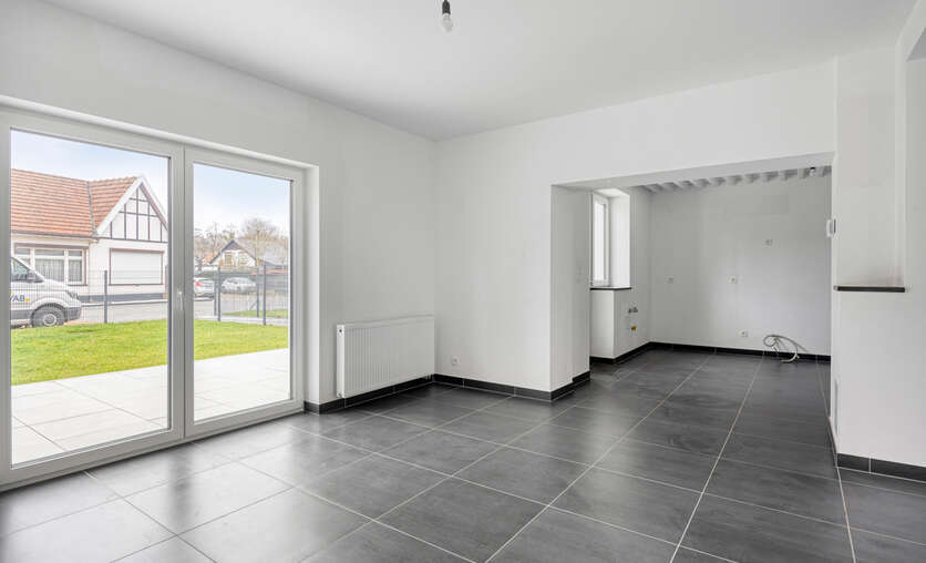 De woning geniet overal van een aangename lichtinval en een mooi contact met de private tuin. De ramen zijn uitgevoerd in pvc met driedubbele beglazing. Achteraan is er via de achterdeur directe toegang tot de tuin.
