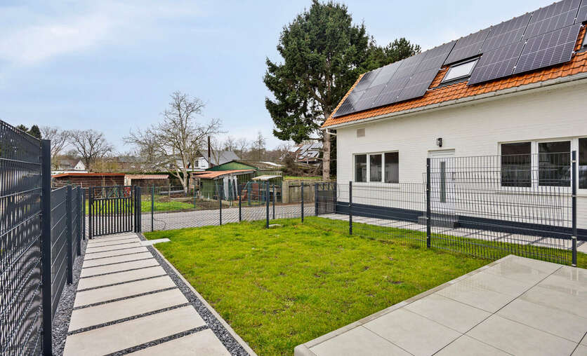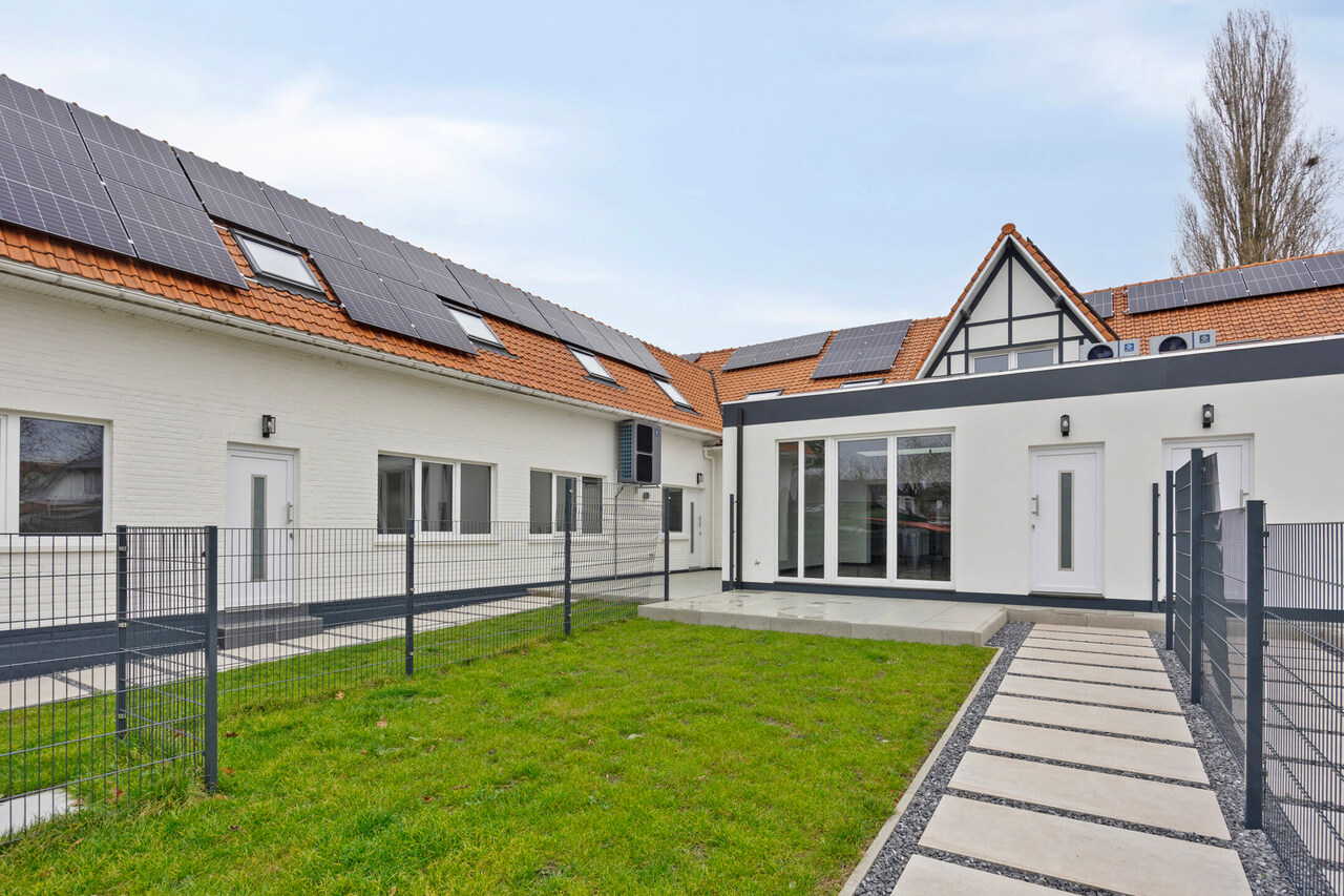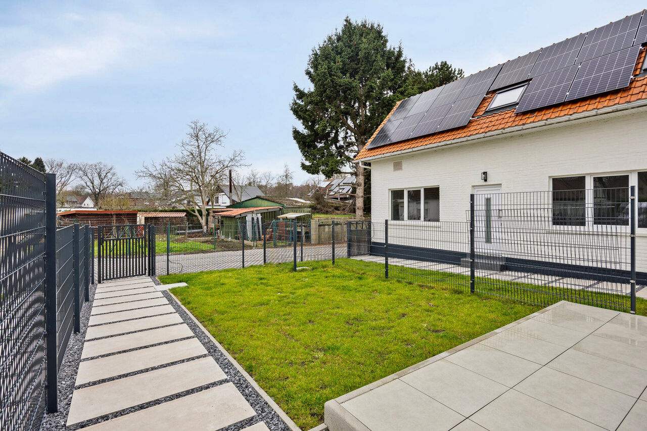 Achteraan de woning bevindt zich een gezellig tuintje met een verhard terras. Aansluitend is er de mogelijkheid om een wagen te parkeren, al de aansluitingen voor een elektrische laadpaal zijn voorzien. In de kelder is bovendien een praktische kelderberging aanwezig.