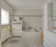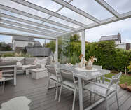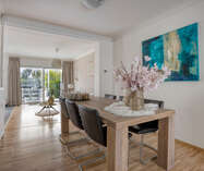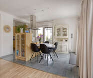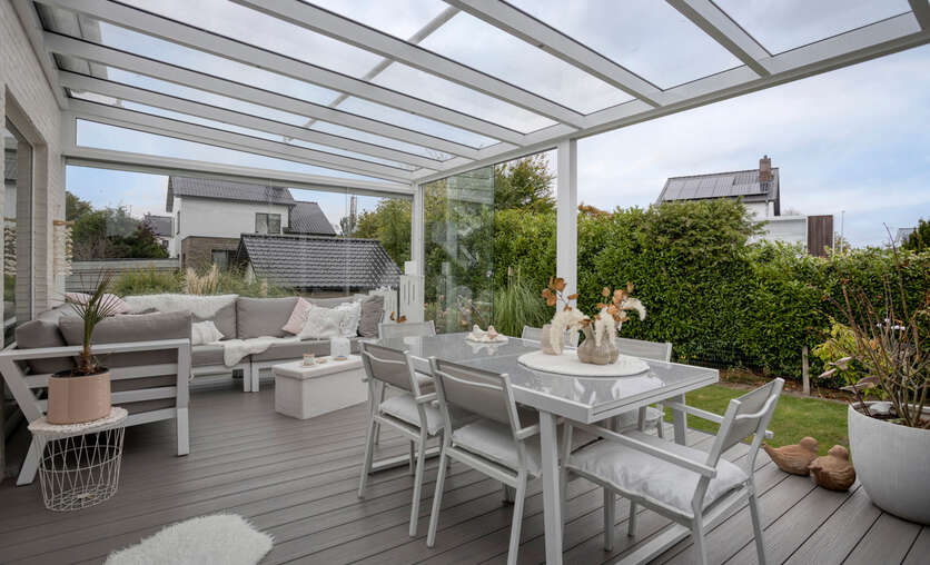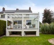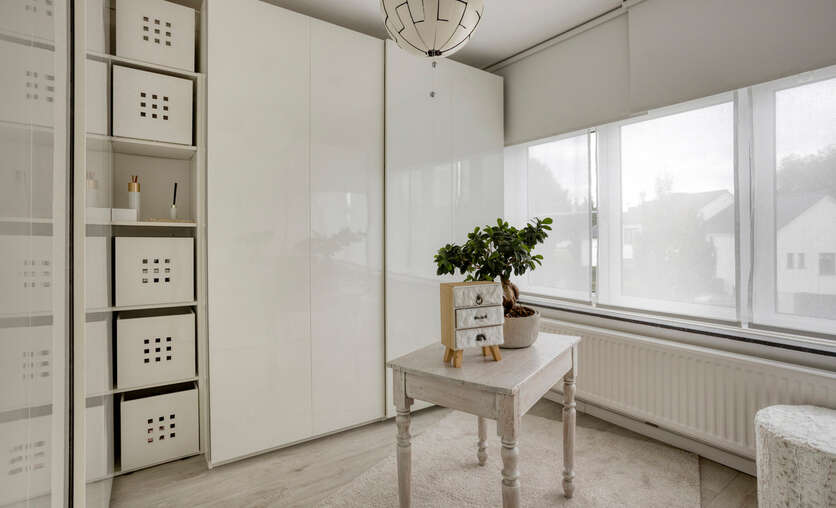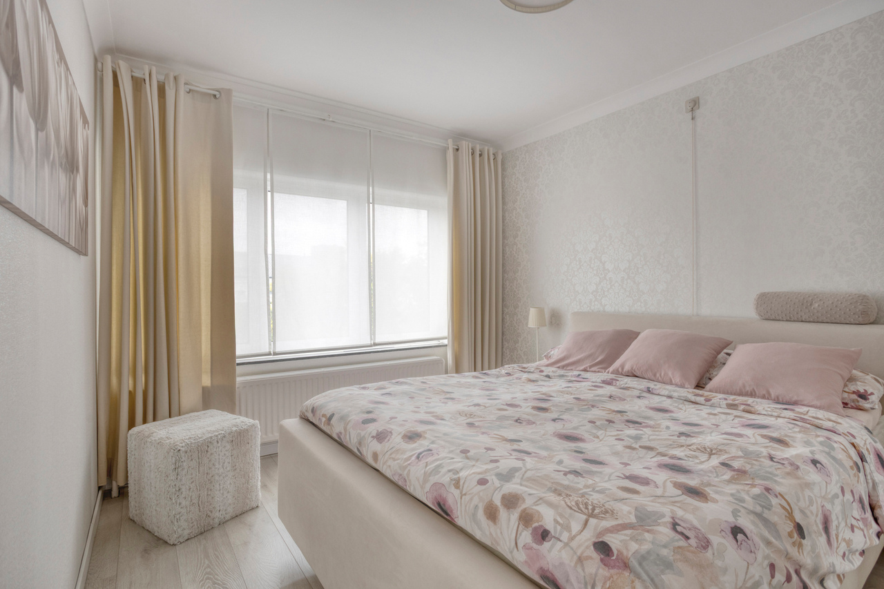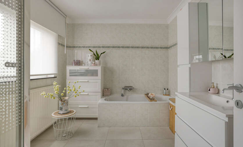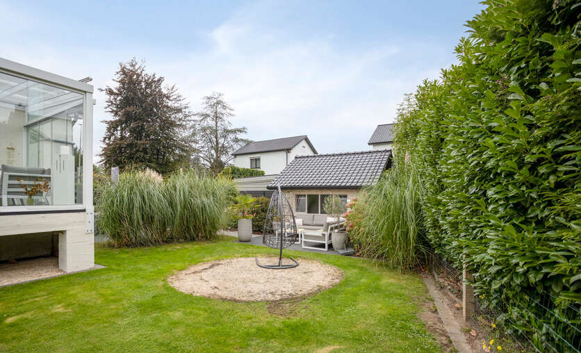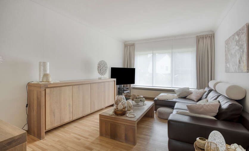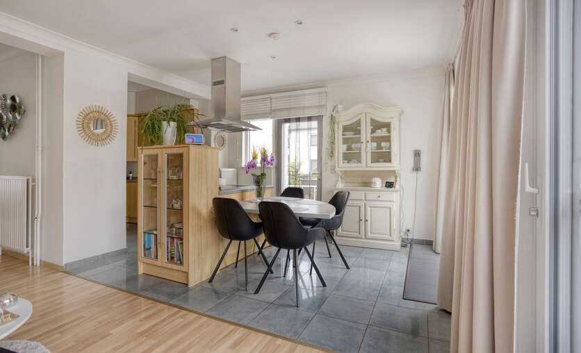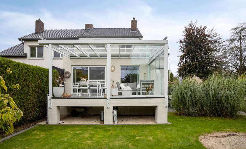 Bij het betreden van de woning komen we binnen in een gezellige hal die ons meteen doorleidt naar de ruime leefruimte. Dankzij de grote ramen aan de voor- en achterzijde geniet u hier de hele dag van veel natuurlijk licht. Aansluitend vinden we de keuken die volledig is uitgerust met een kookplaat, dampkap, ingebouwde oven, vaatwasser en koelkast. Achteraan de woning werd een mooie extra ruimte aangebouwd, voorzien van een zonnescreen, waardoor dit een ideale plek is om te genieten van extra wooncomfort.