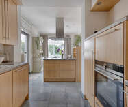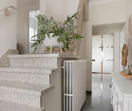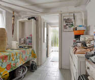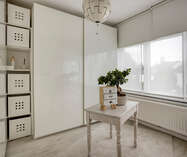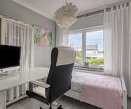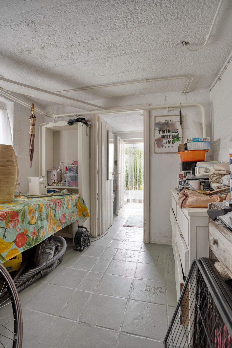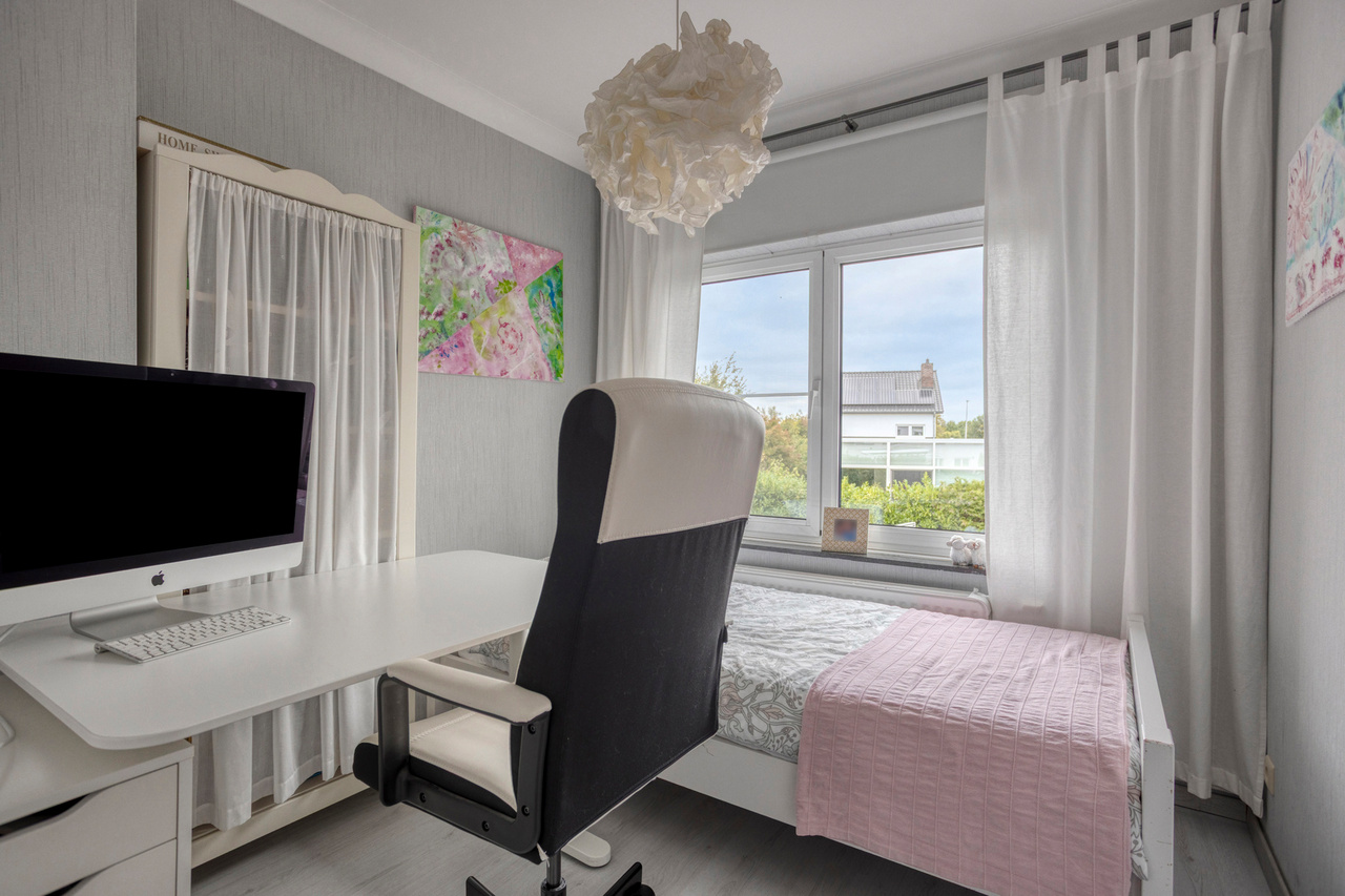 Op de tussenverdieping bevindt zich de badkamer met douche, bad en lavabo, aangevuld met een apart toilet en een praktische ruimte voor kasten. Op de eerste verdieping zijn er drie slaapkamers, perfect voor een gezin of als combinatie van slaap-, werk- en logeerkamer. Verder beschikt de woning over een wasruimte en een kelder, wat extra bergruimte biedt.
