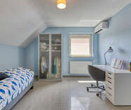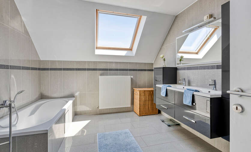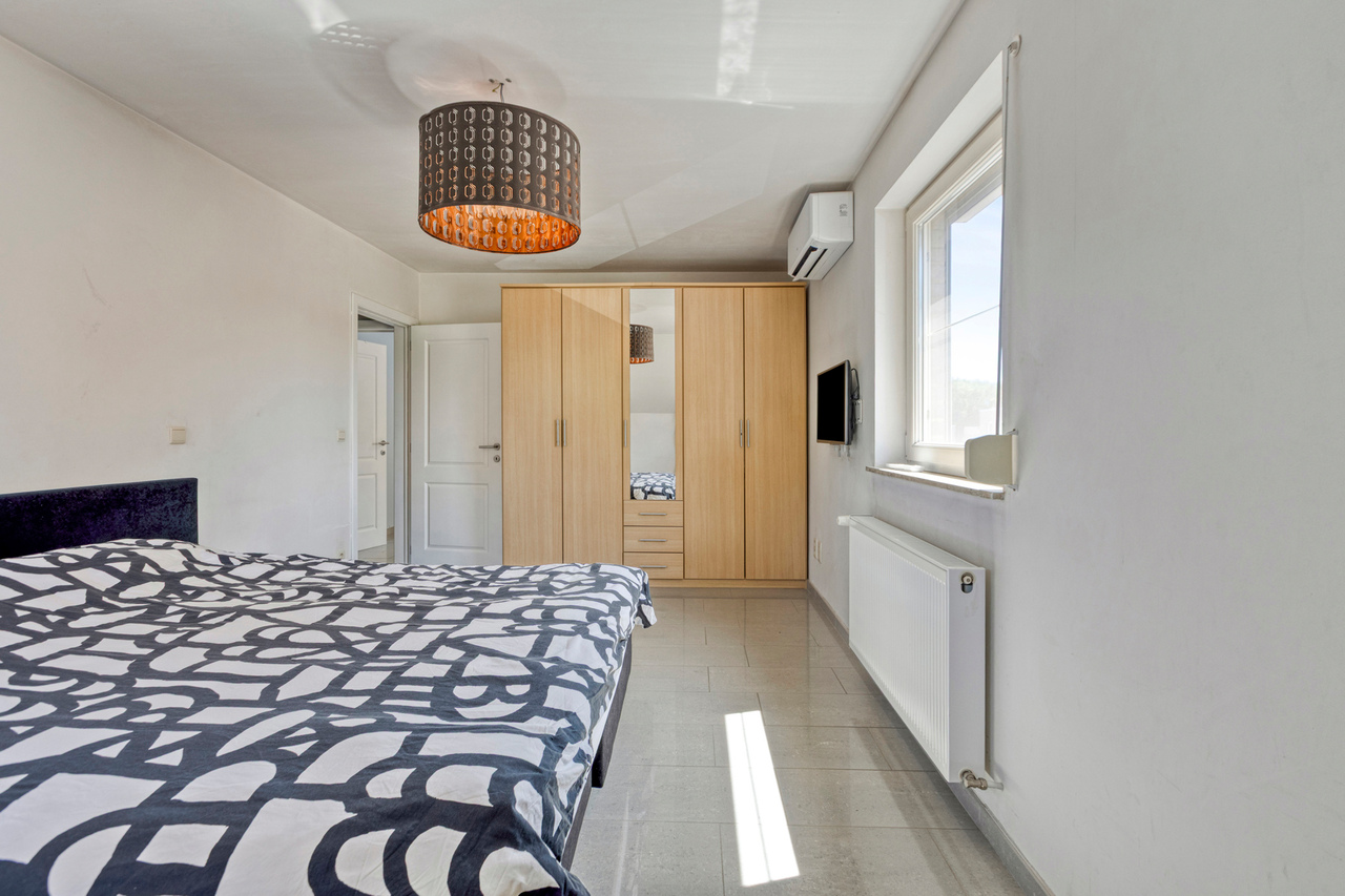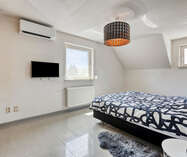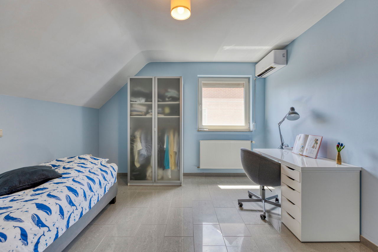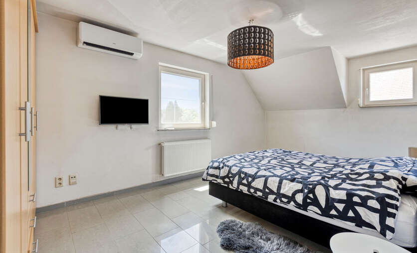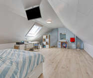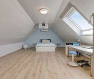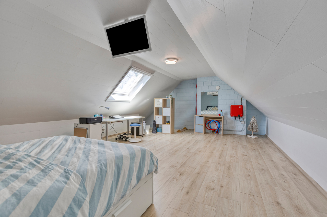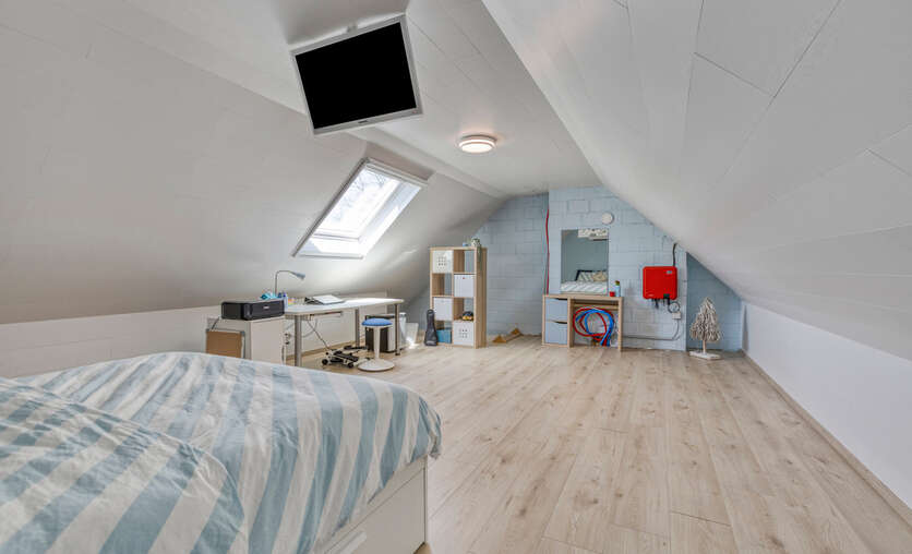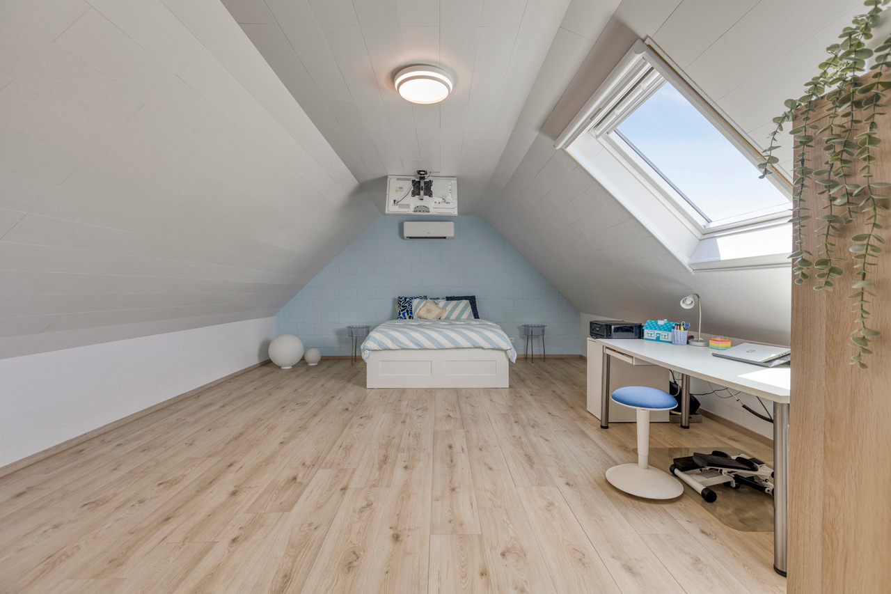 De zolder werd ingericht als extra slaapkamer en biedt voldoende ruimte en comfort.