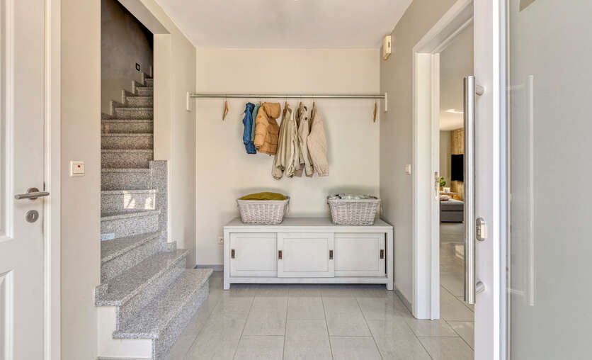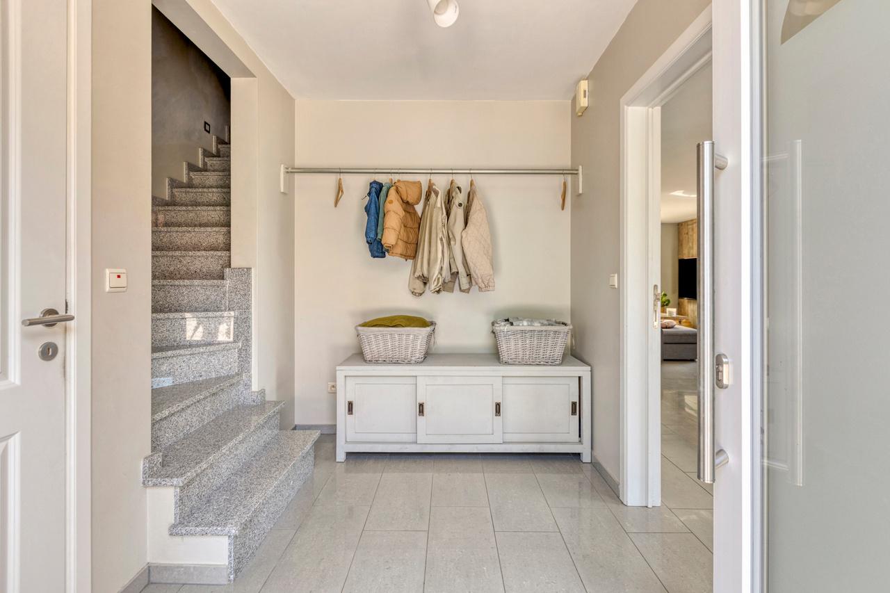 Bij het betreden van de woning komen we terecht in de inkomhal, waar zich ook een apart gastentoilet bevindt.
