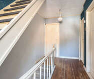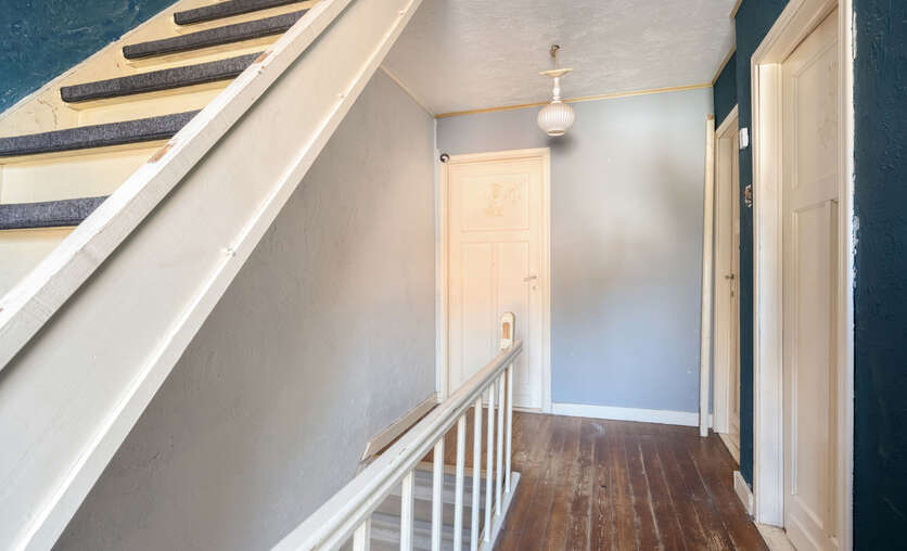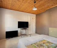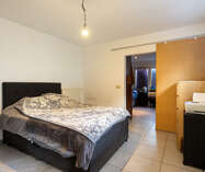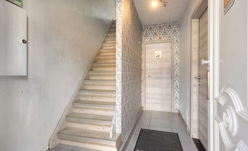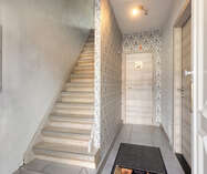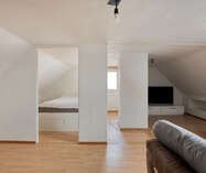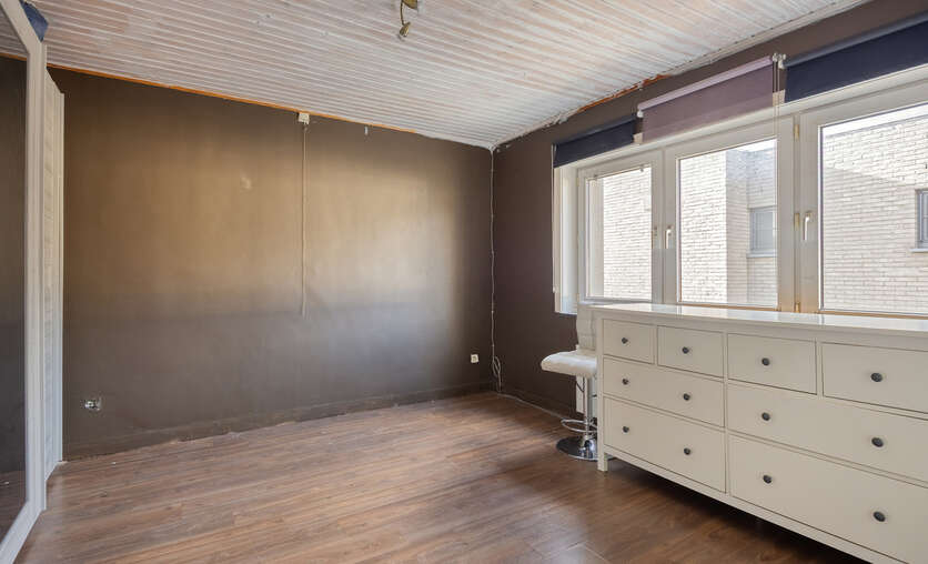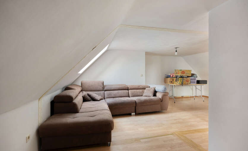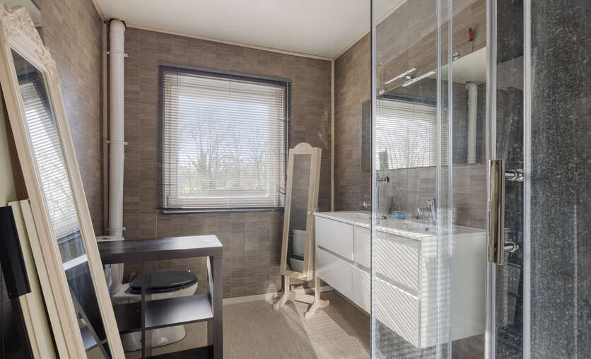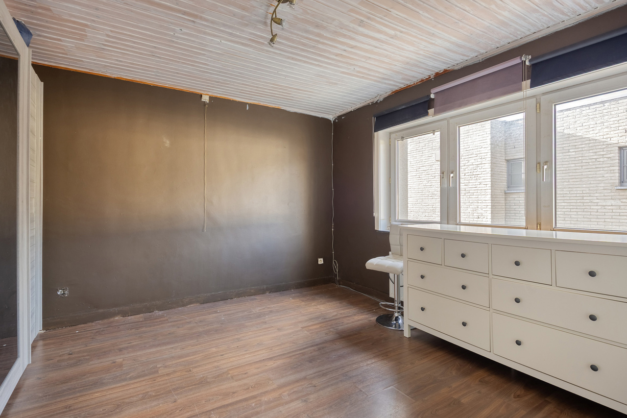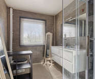 Op de eerste verdieping: twee ruime slaapkamers en een moderne badkamer met stoomcabine, regendouche, dubbele lavabo en toilet. De dakverdieping biedt een grote leefruimte met aansluitende slaapkamer en Velux-dakramen.