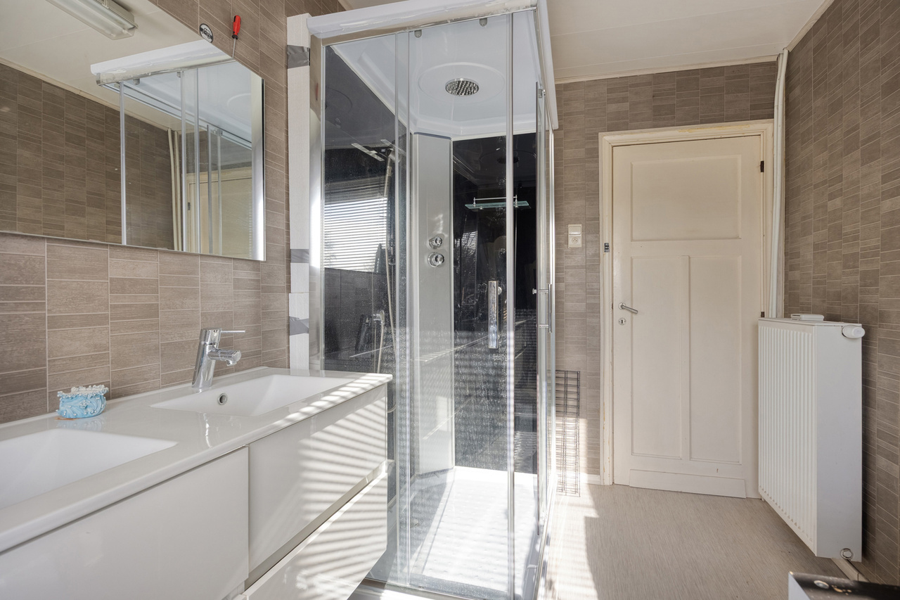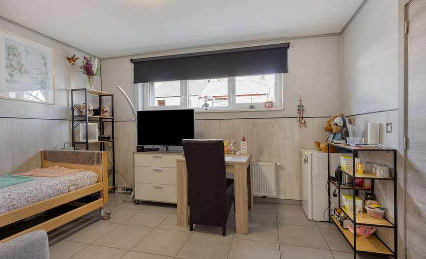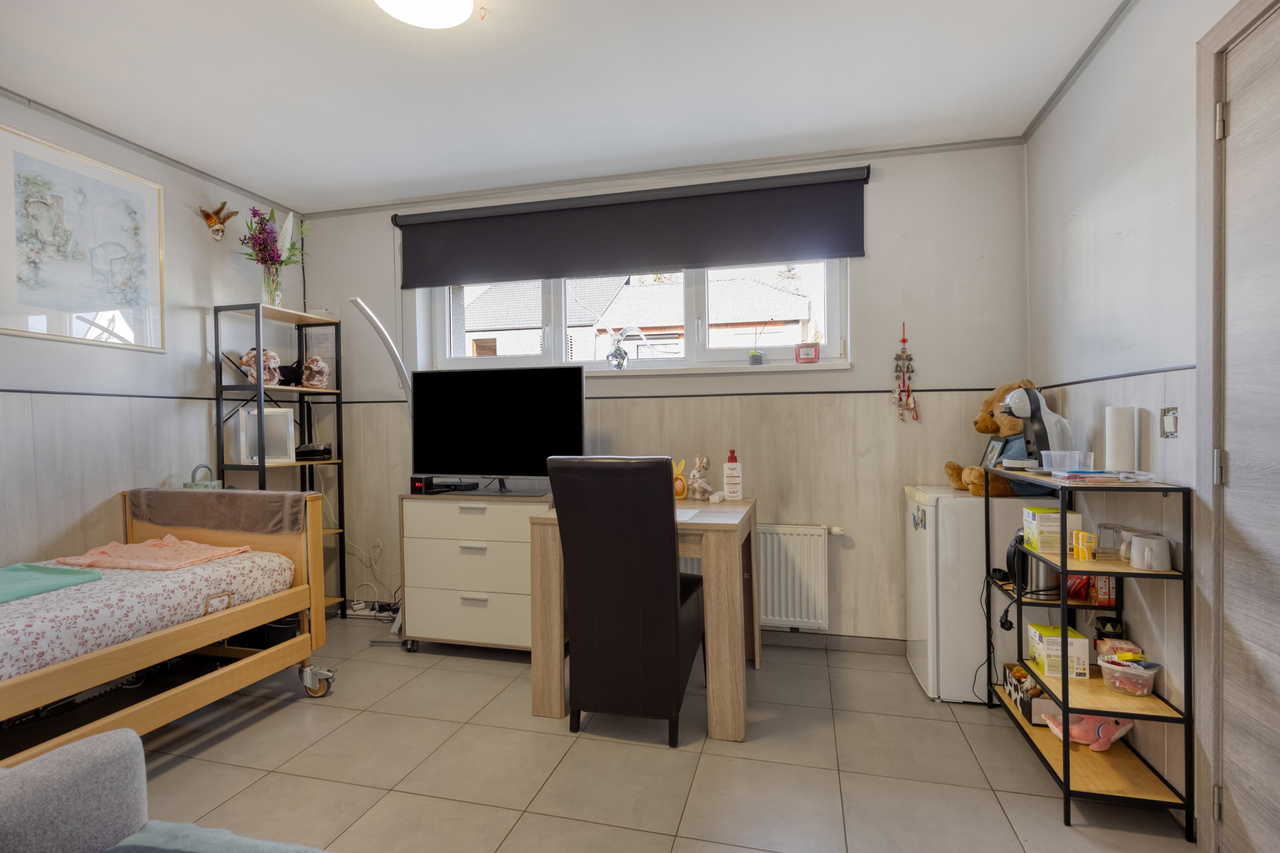 Troeven: 5 slaapkamers – 3 badkamers (2 gelijkvloers + 1 verdieping) – zorgwoning met eigen sanitair – open keuken met kookeiland – veranda – diepe tuin met tuinhuis en overdekt terras – zonnepanelen - asbestveilig.