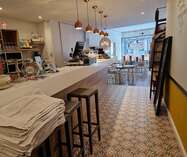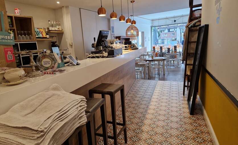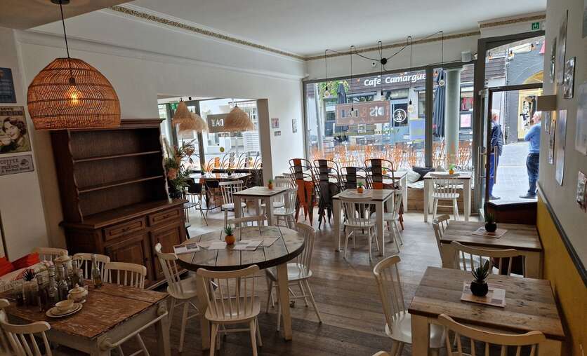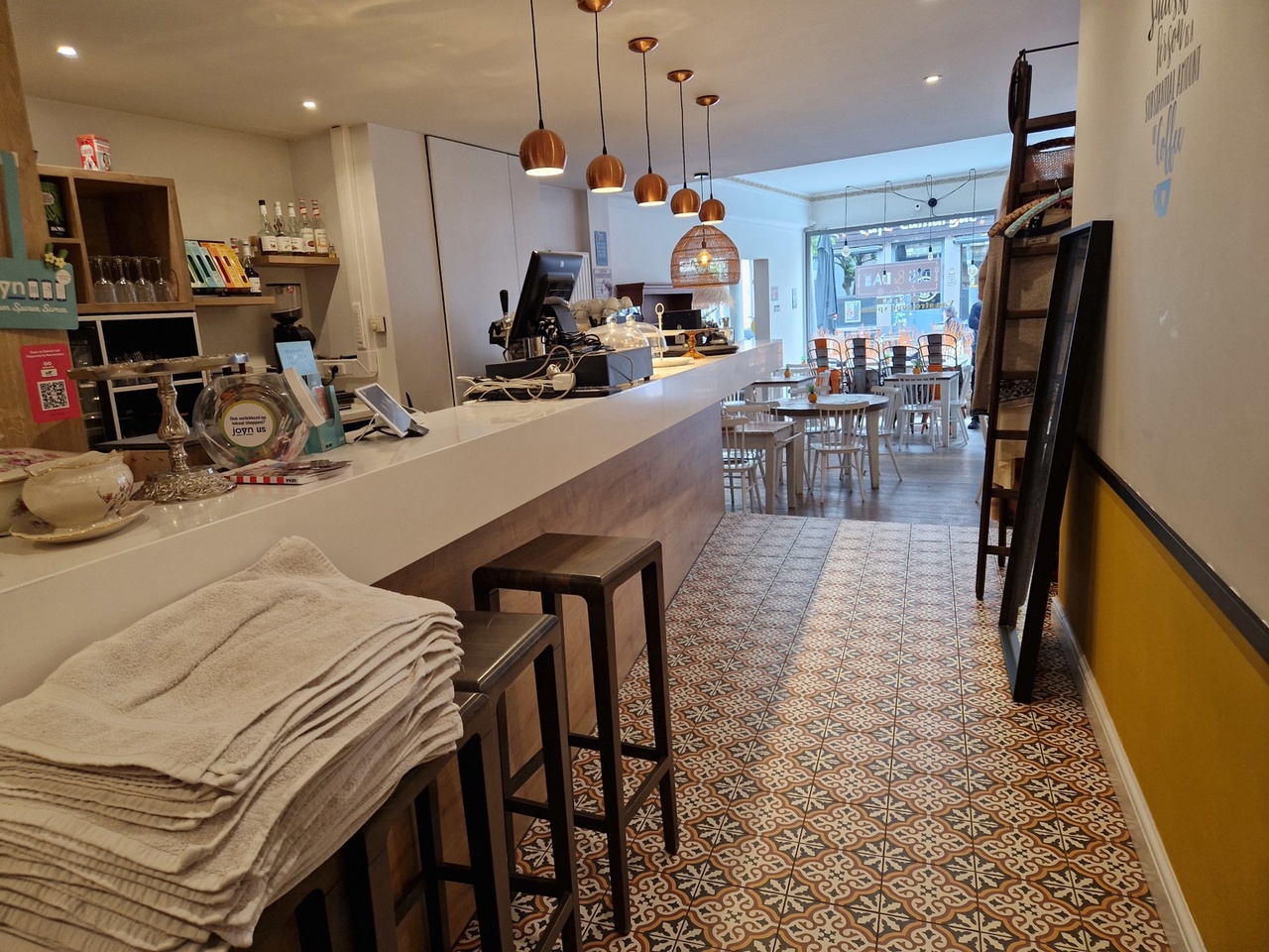 Bij het betreden van de zaak hebben we voldoende open ruimte.
